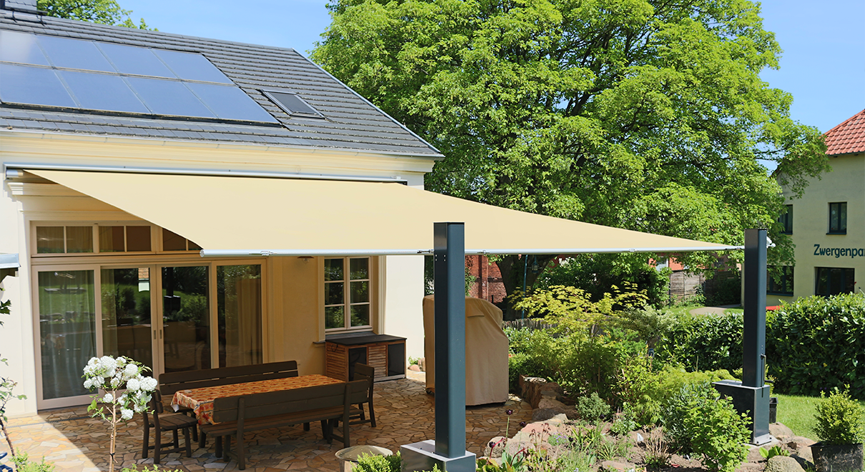 戶外風帆式遮陽簾 單幅最大尺寸: 7000X13000mm 獨立式安裝 也可靠墻安裝